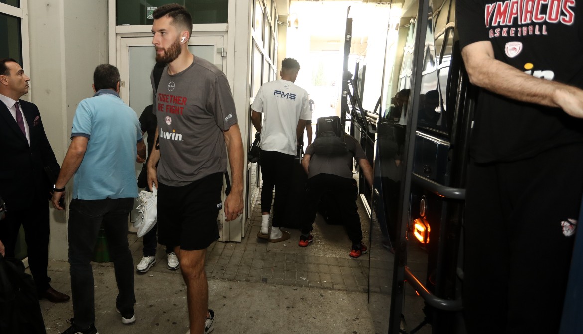 Ο Ολυμπιακός φιλοξενείται από τον Παναθηναϊκό για το Game 4 των μεταξύ τους τελικών της Basket League και η αποστολή των «ερυθρολεύκων» έφτασε στο ΟΑΚΑ χωρίς προβλήματα.