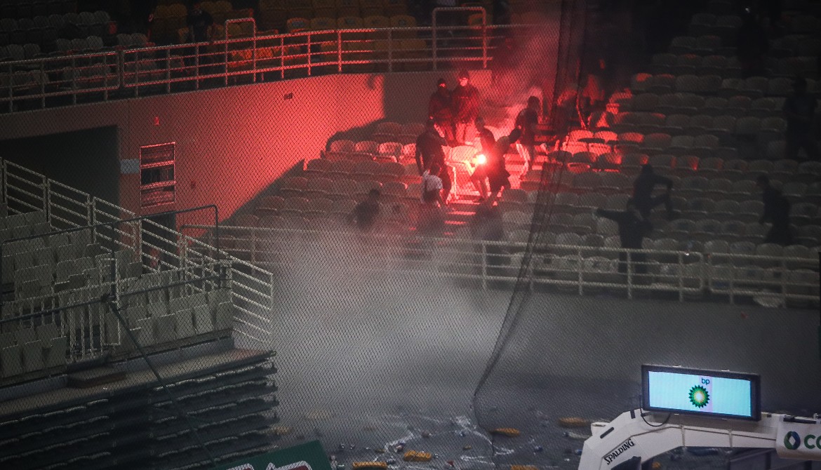 Κατά την εκκένωση του γηπέδου, οι οπαδοί των γηπεδούχων έσπασαν πάρα πολλά καθίσματα και τα εκτόξευσαν προς τον αγωνιστικό χώρο, ωστόσο αυτά σταμάτησαν στο προστατευτικό δίχτυ που υπάρχει πάντα σε αυτές τις αναμετρήσεις.