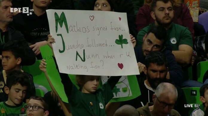 Το πανό αναφερόταν στους δύο αστέρες του Παναθηναϊκού, Ματίας Λεσόρ και Χουάντσο Ερνανγκόμεθ, οι οποίοι ανανέωσαν πρόσφατα τη συνεργασία τους με την ομάδα. Με το μήνυμα αυτό, η μικρή φίλη προέτρεπε τον Κέντρικ Ναν να ακολουθήσει το παράδειγμά τους και να ανανεώσει τη συμφωνία του με την ομάδα.