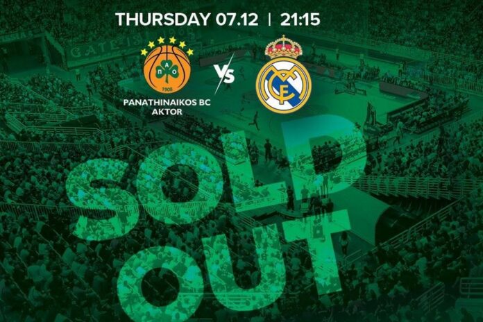 Ο Παναθηναϊκός θα υποδεχτεί τη Ρεάλ το βράδυ της Πέμπτης (7/12 - 21:15), στο δεύτερο μέρος της διπλής αγωνιστικής της EuroLeague και θα έχει την στήριξη του κόσμου, καθώς η πράσινη ΚΑΕ ανακοίνωσε πως εξαντλήθηκαν όλα τα εισιτήρια.