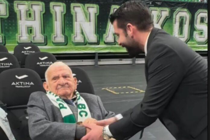 Ο Γιώργος Αποστόλου ο οποίος είναι 96 ετών, βγήκε από τη νοσηλευτική μονάδα προκειμένου να παρακολουθήσει από κοντά την αγαπημένη του ομάδα στο ανακαινισμένο γήπεδό της.