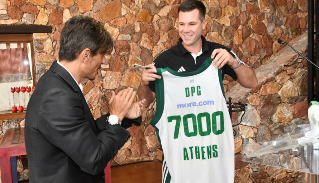 Παράλληλα, παραδόθηκε δώρο από τον τεχνικό διευθυντή, Σάνι Μπετσίροβιτς, στον διοικητικό ηγέτη του «τριφυλλιού», το οποίο ήταν μία λευκή εμφάνιση του Παναθηναϊκού με τον αριθμό 7.000 στην πλάτη.