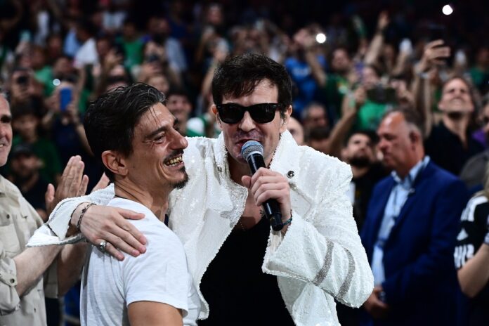 Το «πράσινο» πάρτι ξεκίνησε με τον τραγουδιστή Νίνο να κάνει την εμφάνιση του στο παρκέ του ΟΑΚΑ και τον πρόεδρο του Παναθηναϊκού, Δημήτρη Γιαννακόπουλο να συγκεντρώνει τα περισσότερα βλέμματα.