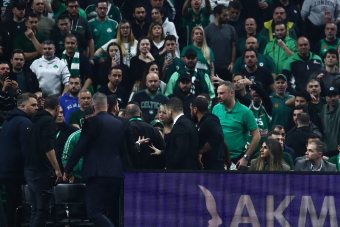 Ένα σκηνικό έντασης δημιουργήθηκε στο Κλειστό των Ολυμπιακών Εγκαταστάσεων, με οπαδούς της Ζαλγκίρις που κάθονταν δίπλα στον πάγκο της ομάδας να ανοίγουν... διάλογο με εκείνους του Παναθηναϊκού, με αποτέλεσμα να βρεθούν πολύ κοντά στο να δημιουργηθεί επεισόδιο.