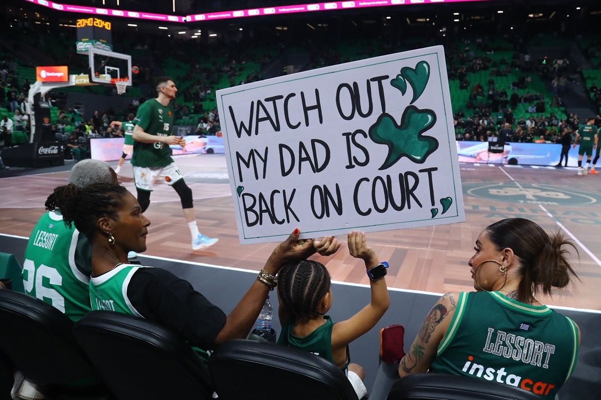 Φυσικά, αυτό το γεγονός έχει στρέψει τους προβολείς πάνω του όσον αφορά αυτήν την αναμέτρηση, ωστόσο δεν ήταν το μόνο... Ο γιος του Ματίας Λεσόρ τράβηξε επίσης τα βλέμματα στη δική του μεριά με το πολύ όμορφο πλακάτ που σήκωσε κατά τη διάρκεια της παρουσίασης των δύο ομάδων, όπου ακούστηκε και το όνομα του πατέρα του. Ο συγκεκριμένος πίνακας έγραφε «Προσέχτε, ο πατέρας μου είναι ξανά πίσω στα παρκέ!», δείχνοντας ξεκάθαρα τον ενθουσιασμό του που βλέπει τον μπαμπά του να παίζει ύστερα από την πολύμηνη απουσία που προηγήθηκε!