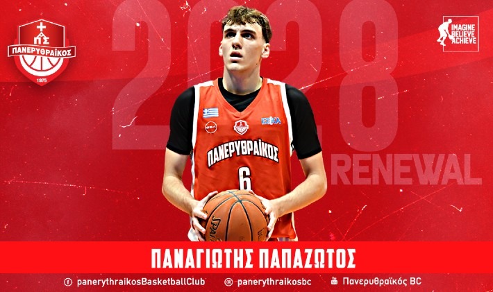 Η διοίκηση του τμήματος μπάσκετ του Πανερυθραϊκού ΑΣ ανακοινώνει τη συμφωνία τετραετούς διάρκειας με τον αθλητή Παναγιώτη Παπαζώτο (2-3, 1.97), ο οποίος θα μείνει στο Κλειστό «Στέλιος Καλαϊτζής» έως το 2028.