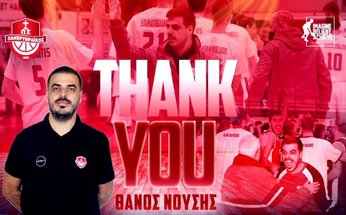 Ο Πανερυθραϊκός BC ανακοινώνει την ολοκλήρωση της συνεργασίας με τον προπονητή Θάνο Νούση, ο οποίος τίμησε με την παρουσία του για 7 ολόκληρα χρόνια τον Σύλλογο.