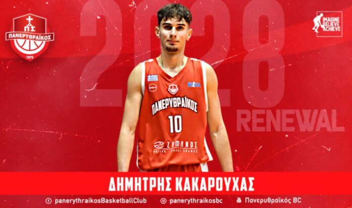 Ο Πανερυθραϊκός συνεχίζει να επενδύει στο νεανικό στοιχείο του, και έτσι ανανέωσε τη συνεργασία του με τον Δημήτρη Κακαρούχα (1,97 – 18 ετών) για τα επόμενα τέσσερα χρόνια.