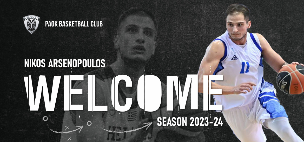 Η ΚΑΕ ΠΑΟΚ mateco ανακοινώνει τη συμφωνία με τον Νίκο Αρσενόπουλο, ο οποίος θα αγωνιστεί στην ομάδα μας τη σεζόν 2023-24. Καλωσορίζουμε στη μεγάλη οικογένεια του ΠΑΟΚ έναν από τους πιο αξιόλογους αθλητές της νέας γενιάς του Ελληνικού μπάσκετ.