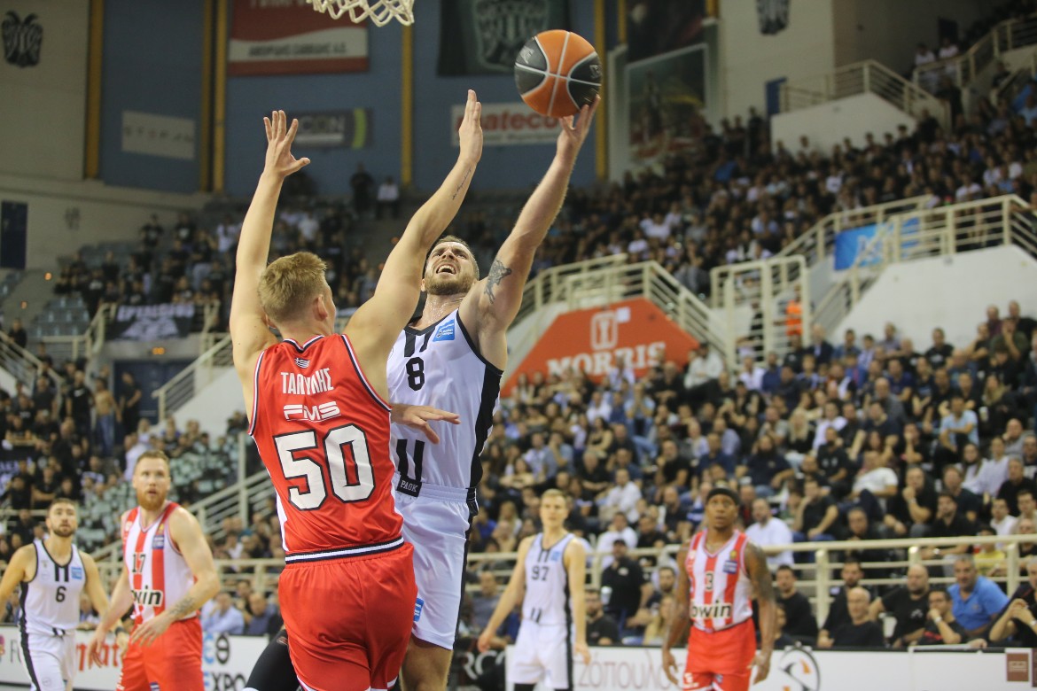 Ο ΠΑΟΚ φάνηκε να μπλοκάρει τον αντίπαλό του στα πρώτα 2.5 λεπτά, αλλά δεν το κεφαλαιοποίησε πέραν του αρχικού 5-2, με τον Πίτερς και τον Μπραζντέικις ως βασικοί να δίνουν το ρυθμό στην ομάδα τους, που εκμεταλλεύτηκε και τη σύγχυση από τον τραυματισμό του ΜακΝίς στην άλλη πλευρά (7-15 στο 8'). Η βελτιωμένη άμυνα των γηπεδούχων και ο αιφνιδιασμός των «ερυθρολεύκων», είτε με λύσεις στο transition είτε «χτυπώντας» τον Τανούλη των αρκετών λαθών, με θύτες τον Μαργαρίτη και τον Σχίζα, έφεραν ένα σερί, με το οποίο η διαφορά μειώθηκε στην ελάχιστη διαφορά (16-17).