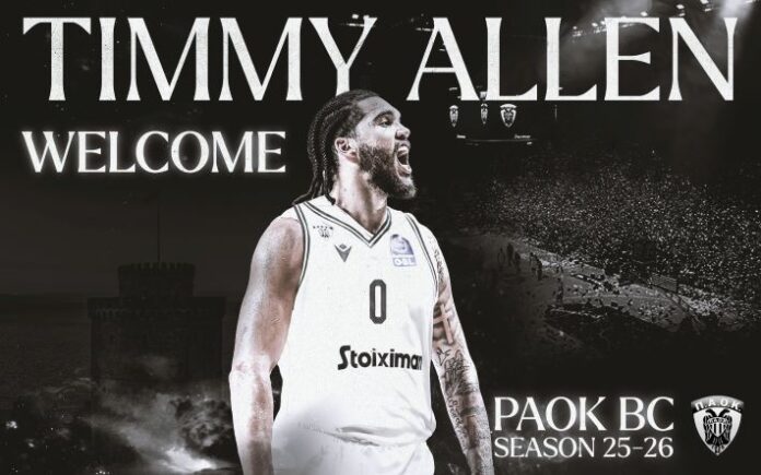 «Η ΚΑΕ ΠΑΟΚ ανακοινώνει τη συμφωνία με τον Αμερικανό καλαθοσφαιριστή Timmy Allen, ο οποίος θα ενισχύσει την προσπάθεια της ομάδας μας ως το τέλος της αγωνιστικής περιόδου 2025-26.