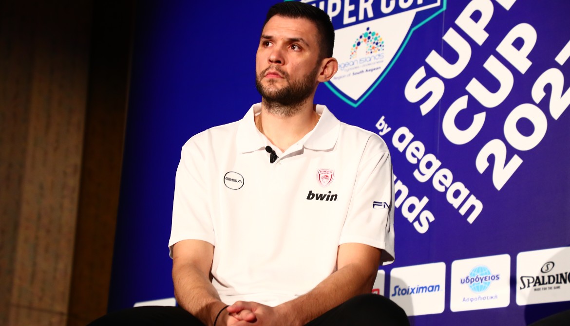 «Να ευχηθώ καταρχήν μία καλή χρονιά σε όλους, να ασχοληθούμε μόνο με το μπάσκετ και με τις όμορφες στιγμές που αυτό προσφέρει, να έχουμε υγεία γιατί βλέπουμε τι συμβαίνει γύρω μας. Πέρυσι ήταν μια άκρως πετυχημένη χρονιά, σίγουρα είχαμε αλλαγές, χάσαμε παίκτες που ήταν σημαντικοί στο παιχνίδι μας, ένας από τους οποίους κάθεται δίπλα μου (σ.σ. Σλούκας). Έχουμε μεγάλη αυτοπεποίθηση και εξαιρετική χημεία ήδη παρόλο που εντάχθηκαν στην ομάδα νέα παιδιά, στόχος μας να κατακτήσουμε τον πρώτο τίτλο και να κρατήσουμε τον Ολυμπιακό ψηλά.