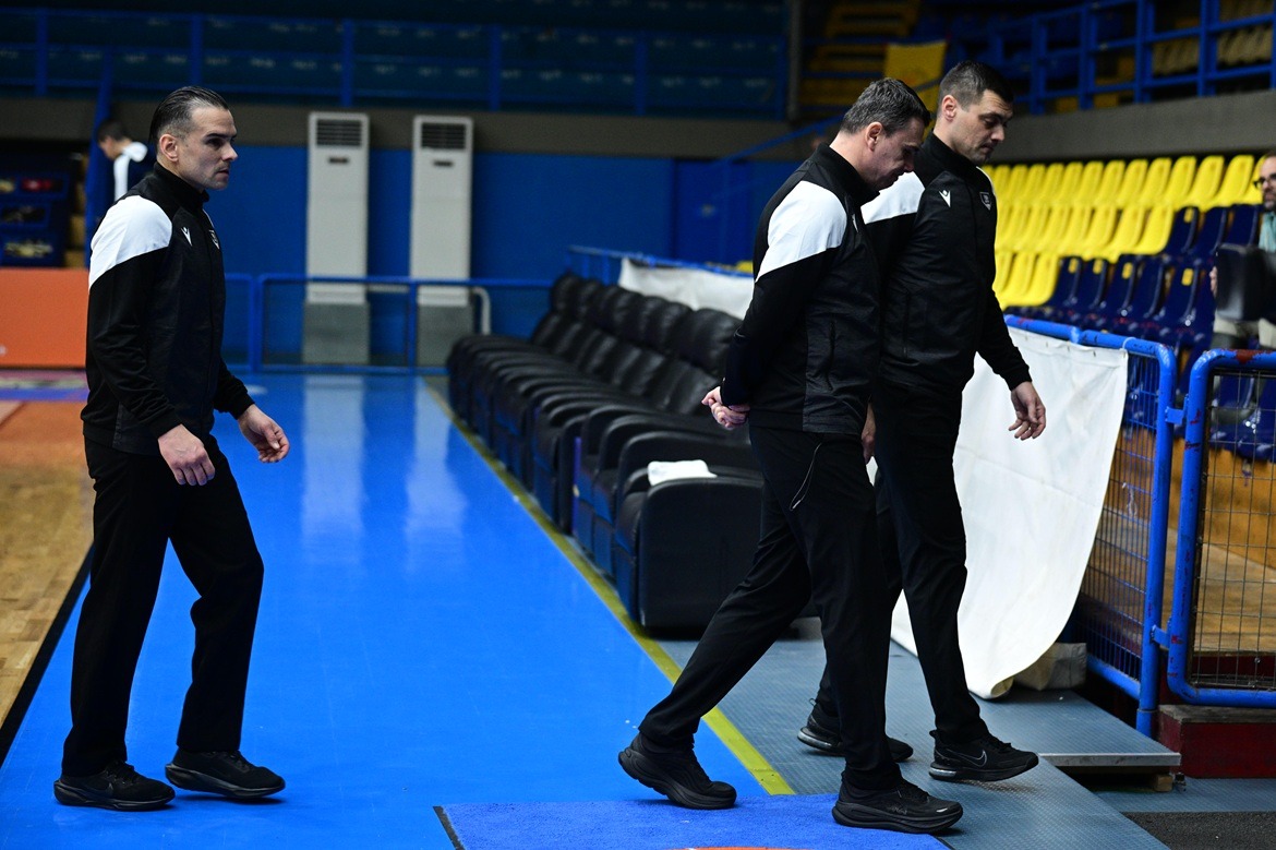 Μικρή καθυστέρηση στην έναρξη του αγώνα Περιστέρι-Σαραγόσα, για τη 4η αγωνιστική της φάσης των «16» του FIBA Europe Cup, λόγω νερών που στάζουν σε ένα σημείο εκτός γραμμών.