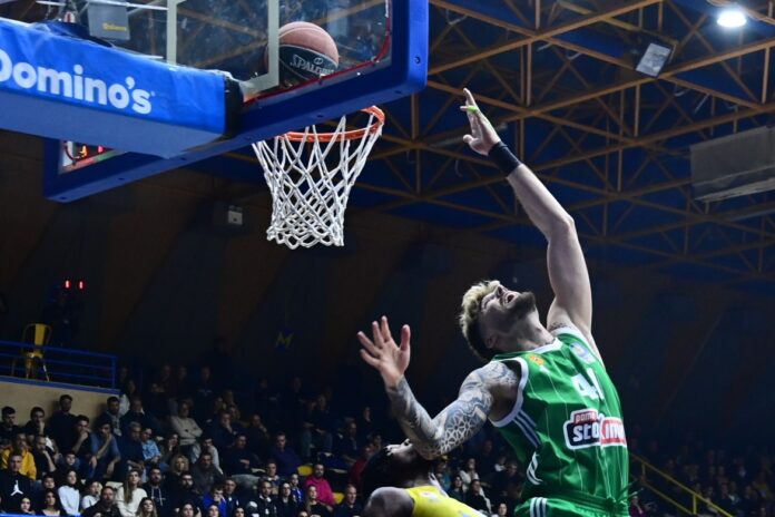 Δευτερόλεπτα νωρίτερα ο Κρις Κόφι μετά από ένα σουτ που επιχείρησε προσγειώθηκε άτσαλα στον πάγκο του Παναθηναϊκού!