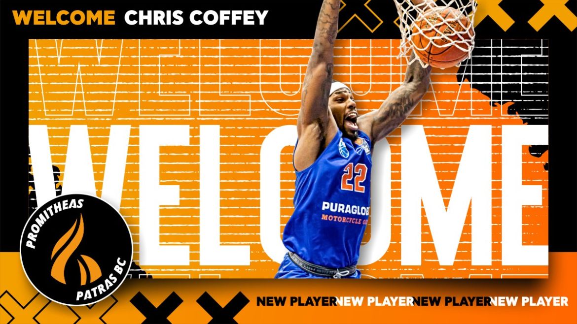 "Η ΚΑΕ Προμηθέας Πάτρας ανακοινώνει την συμφωνία της με τον Αμερικάνο forward Chris Coffey, ο οποίος την αγωνιστική περίοδο 2023-24 θα αγωνίζεται με την φανέλα της ομάδας μας.