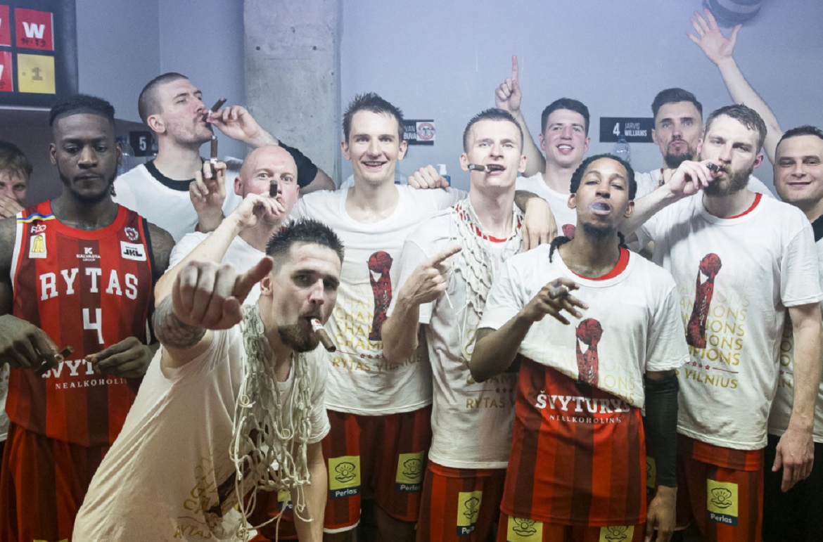 Η Ρίτας Βίλνιους πανηγυρίζει την κατάκτηση του πρωταθλήματος Λιθουανίας μετά το δραματικό 79-76 επί της Λιετκαμπέλις στον 50 τελικό των πλέι οφ.