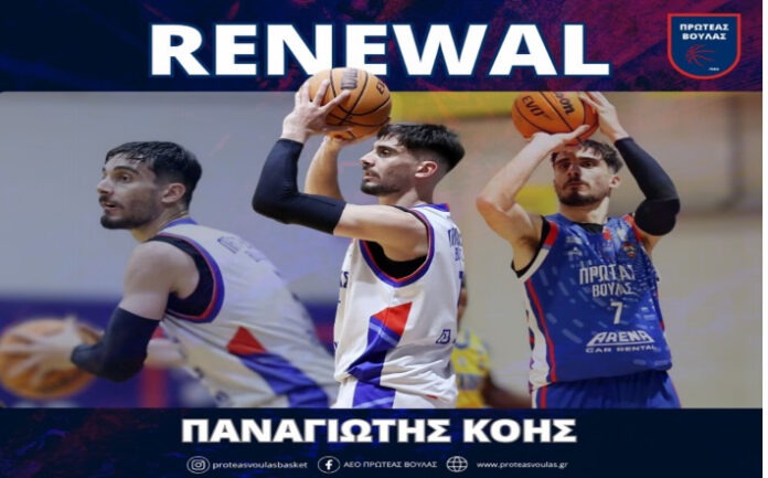 Στη πρώτη της ανανέωση ενόψει της νέας αγωνιστικής περιόδου έφτασε ο Πρωτέας Βούλας, κρατώντας τον Παναγιώτη Κόη (1,92 – 26 ετών).