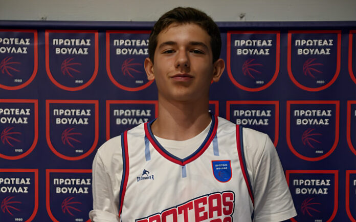 Ο γεννημένος το 2009 (9 Μαΐου) αγωνίζεται στις υποδομές του Πρωτέα Βούλας και ο Ντίνος Καλαμπάκος τον έριξε στο παρκέ για 2’06’’ για να σκοράρει τους πρώτους του πόντους στα 45’’ με 2/2 βολές,