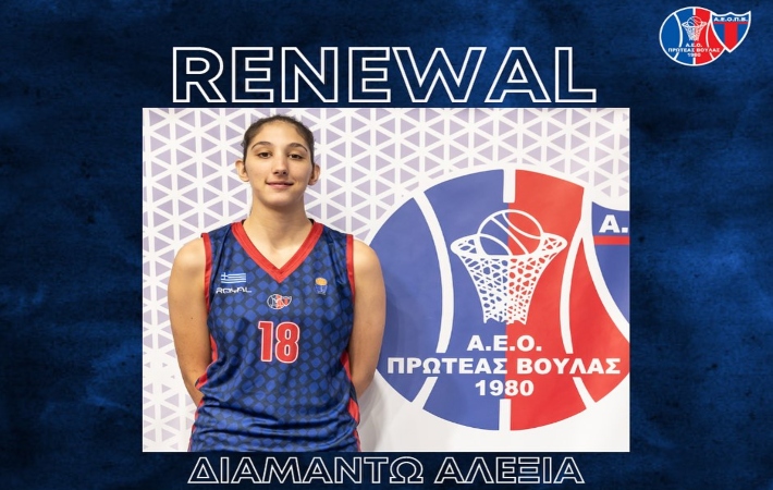 Ο Πρωτέας Βούλας ανακοινώνει την ανανέωση της συνεργασίας του με την αθλήτρια της Γυναικείας ομάδας, Διαμάντω Αλεξιά.
