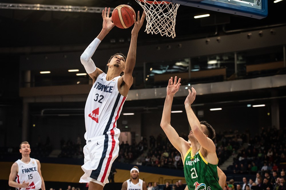 Με τον Βίκτορ Ουεμπανγιάμα, να σημειώνει στο ντεμπούτο του 20 πόντους (6/13 σουτ, 7/7 βολές), 9 ριμπάουντ σε 23:29 λεπτά συμμετοχής, η ομάδα του Βενσάν Κολέ πήρε το πολύτιμο διπλό με 90-65, που την έφερε στην πρώτη θέση με την Λιθουανία. Αγκαλιά με την πρόκριση οι δύο ομάδες (7 νίκες έκαστος) διότι στο άλλο παιχνίδι του ομίλου, το Μαυροβούνιο επικράτησε της Τσεχίας με 65-56 στην Πράγα. Εδραιώθηκε έτσι στην 3η θέση (6 νίκες) του ομίλου και χρειάζεται μία νίκη ακόμα, με τους Τσέχους από την πλευρά τους να ελπίζουν σε ένα μικρό "θαύμα", με τρία παιχνίδια να απομένουν.