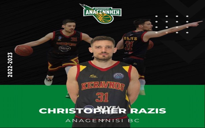 Σε μια πολύ σπουδαάια κίνηση έφτασε η νεοφώτιστη στην Γ' Εθνική, Αναγέννηση Αρκαλοχωρίου η οποία συμφώνησε με τον Χριστόφορο Ραζή (1,94 - 33 ετών).