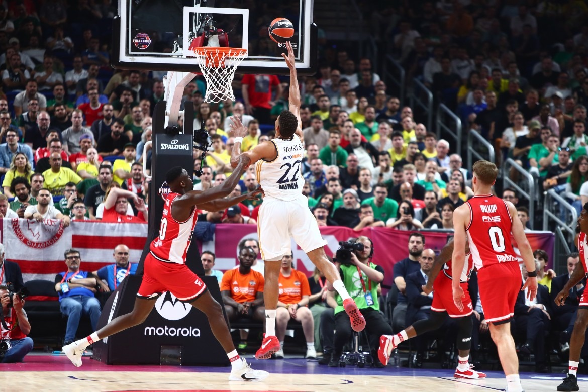 ΜΕ ΤΗ ΓΛΩΣΣΑ ΤΩΝ ΑΡΙΘΜΩΝ: Όταν η Ρεάλ σουτάρει τόσο καλά, τόσο από κοντά με 19/28 δίποντα και ποσοστό 67.9% όσο και από μακριά με 12/27 τρίποντα και ποσοστό 44.4%, με τον πρώτο τομέα ειδικά να κάνει τη διαφορά απέναντι στα 12/29 δίποντα του Ολυμπιακού με 41.4%, τότε είναι δύσκολο να τη σταματήσεις.