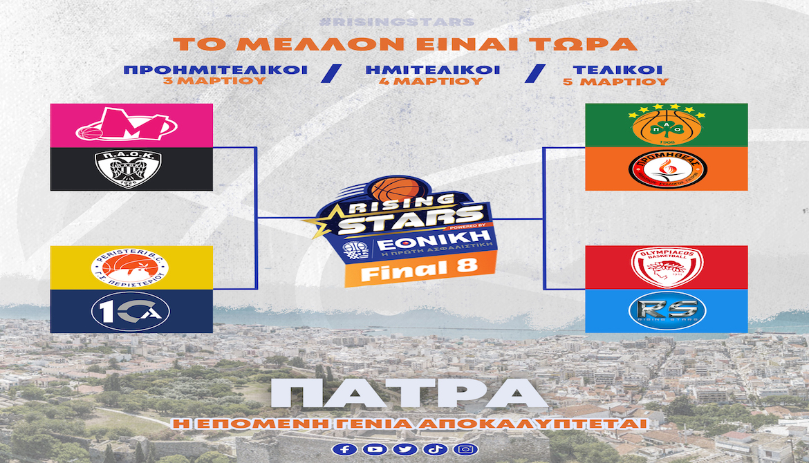 Το Final 8 του Rising Stars θα διεξαχθεί 3-5 Μαρτίου στο Promitheas Park στην Πάτρα.