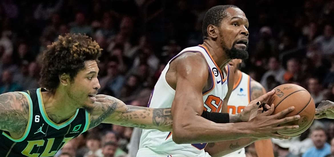 Νικηφόρο ήταν το ντεμπούτο του Κέβιν Ντουράντ στους Φοίνιξ Σανς, καθώς κέρδισαν με 105-91 τους Σάρλοτ Χόρνετς μες στο «Spectrum Center».
