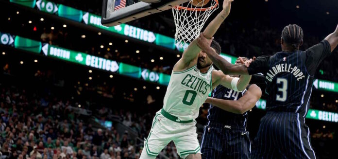Ο Τζέισον Τέιτουμ πάγωσε το «TD Garden» όταν έπεσε άτσαλα στο παρκέ, έπειτα από προσπάθειά του για κάρφωμα στην αναμέτρηση των Μπόστον Σέλτικς με τους Ορλάντο Μάτζικ.