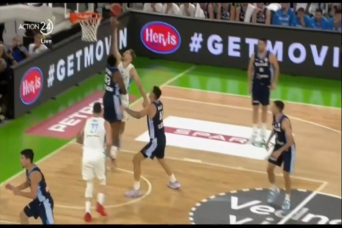 Ο Θανάσης Αντετοκούνμπο δεν σταματάει να εντυπωσιάζει κόντρα στους Σλοβένους. Για μία ακόμη φορά πάλεψε και βγήκε νικητής στην μάχη της άμυνας και έδωσε ασίστ στον Ντίνο Μήτογλου για το κάρφωμα.