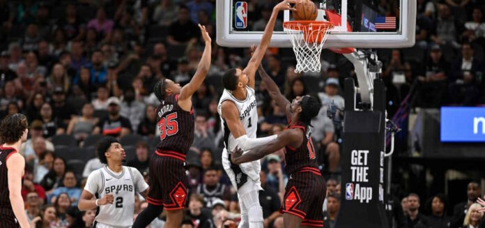 Απίθανος ο Βίκτορ Ουεμπανιάμα, έσπασε ρεκόρ εξήντα ετών στη νίκη των Σαν Αντόνιο Σπερς με 129-114 επί των Σικάγο Μπουλς στο «Frost Bank Center».