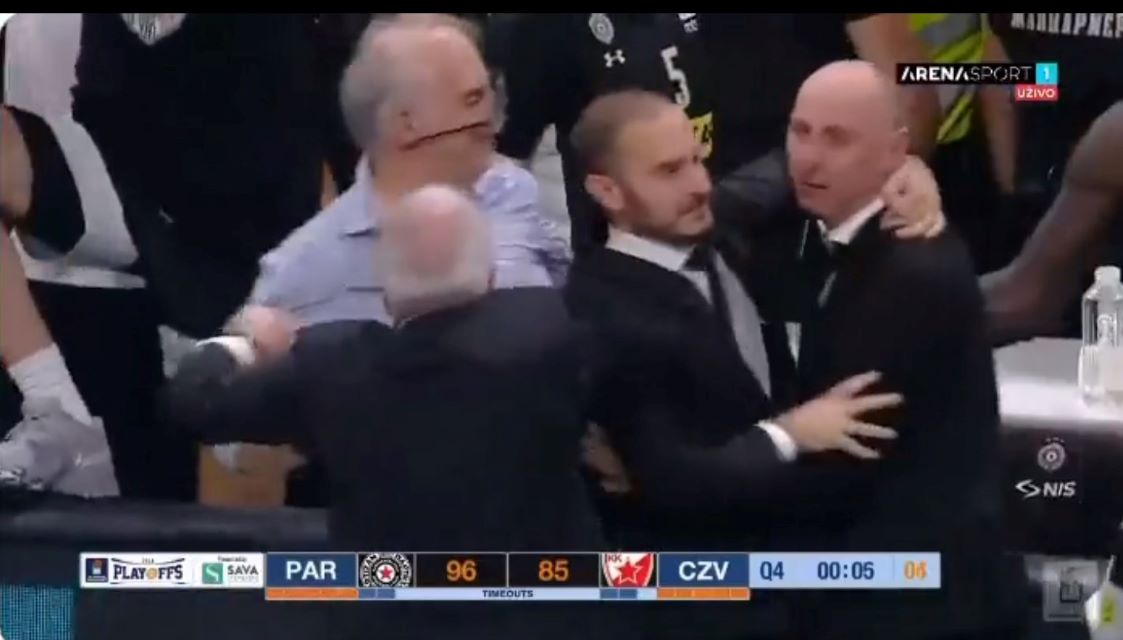 Παρόλο που έμεναν μόλις (5") για τη λήξη και η διαφορά βρισκόταν στο +11 για την Παρτίζαν, ο Ζέλικο Ομπράντοβιτς (και προς ένδειξη σεβασμού στον αντίπαλο) δεν δίστασε να δώσει μία... απαλή σφαλιάρα στον οπαδό που μπήκε στο παρκέ διωχνοντάς τον παράλληλα από το παρκέ.