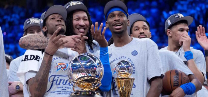 Οι Οκλαχόμα Σίτι Θάντερ αναδείχθηκαν πρωταθλητές στη Δύση, στα φετινά playoffs του ΝΒΑ, μετά τη νέα νίκη τους επί των Μινεσότα Τίμπεργουλφς στο «Paycom Center».