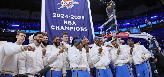 Σε ειδική τελετή που έλαβε χώρα στο «Paycom Center», πριν από την πρεμιέρα του φετινού πρωταθλήματος κόντρα στους Xιούστον Ρόκετς, οι γηπεδούχοι ύψωσαν στον ουρανό του κλειστού το λάβαρο του τίτλου και, παράλληλα, οι παίκτες μοιράστηκαν τα δαχτυλίδια τους.