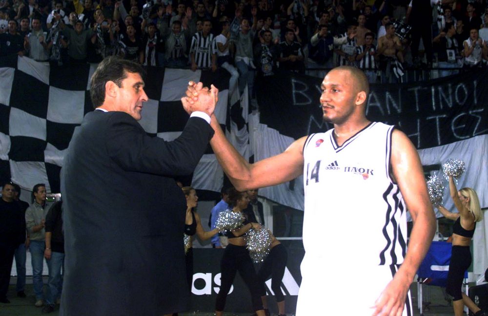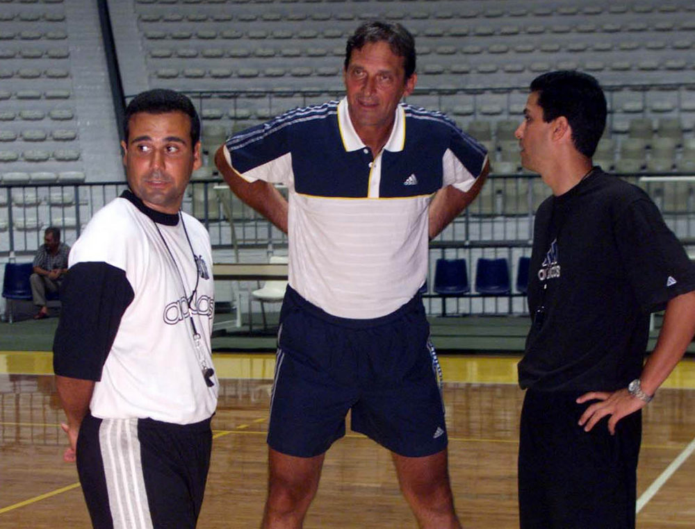 Με τους συνεργάτες του στον ΠΑΟΚ του 1999-2000, Κώστα Φλεβαράκη και Γιάννη Σφαιρόπουλο