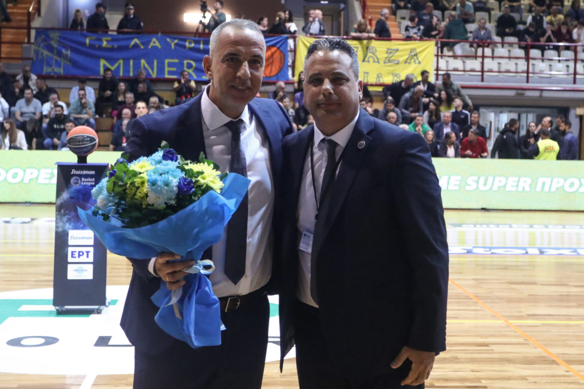 Λίγο πριν το τζάμπολ της αναμέτρησης του Λαυρίου με το Μαρούσι, για την έκτη αγωνιστική της Basket League, οι γηπεδούχοι τίμησαν για την συνεισφορά του τον μέχρι πρότινος προπονητή της ομάδας και νυν τεχνικό του Αμαρουσίου, Γιώργο Λιμνιάτη.