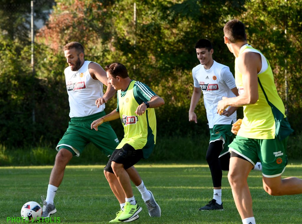 Αλλαγή στο πρόγραμμα και έξοδο από τη... ρουτίνα για τους "πράσινους" στην Πορταριά. Αντί για τρέξιμο ή μπάσκετ στο κλειστό της περιοχής, το... μενού είχε ποδόσφαιρο.