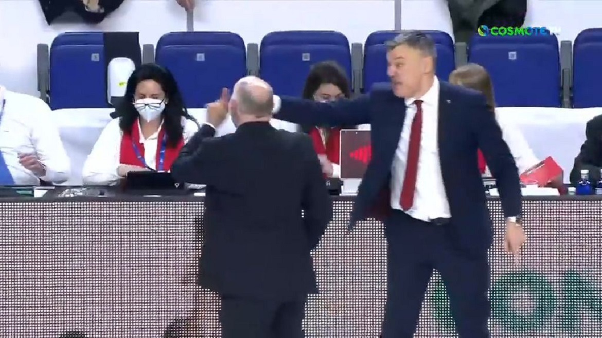 Ο Πάμπλο Λάσο με τον Σαρούνας Γιασικεβίτσιους όχι μόνο τα... είπαν έντονα σε κάποια φάση κατά τη διάρκεια του αγώνα, αλλά το κράτησαν και μέχρι τη λήξη και φάνηκε να δίνουν συνέχεια την ώρα που πλησίασαν για να χαιρετηθούν.