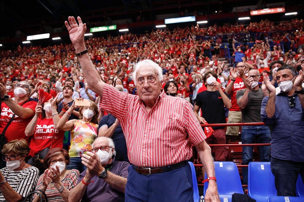 Ο 90χρονος θρύλος του ιταλικού μπάσκετ, τόσο ως παίκτης όσο και ως προπονητής και μέλος τόσο του Νέισμιθ Hall of fame όσο και του ιταλικού, έδωσε το παρών στον τρίτο τελικού του Μιλάνου με τη Βίρτους και έτυχε θερμότατης υποδοχής.