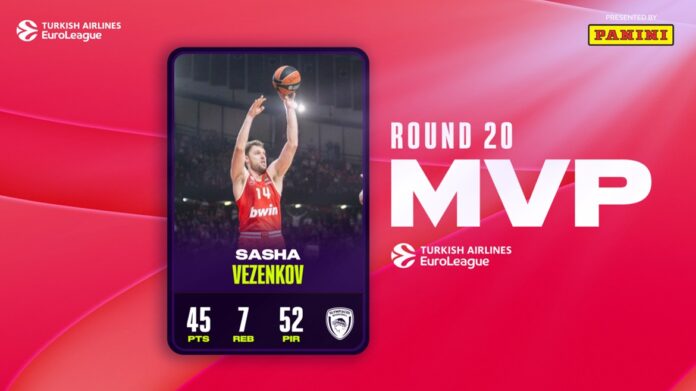 Η βραδιά καριέρας του Σάσα Βεζένκοφ στο ΣΕΦ κόντρα στη Μπάγερν μπορεί να μην πρόλαβε να ολοκληρωθεί με νέο ρεκόρ πόντων στην ιστορία της διοργάνωσης, όμως δε θα μπορούσε παρά να τον αναδείξει MVP της αγωνιστικής.