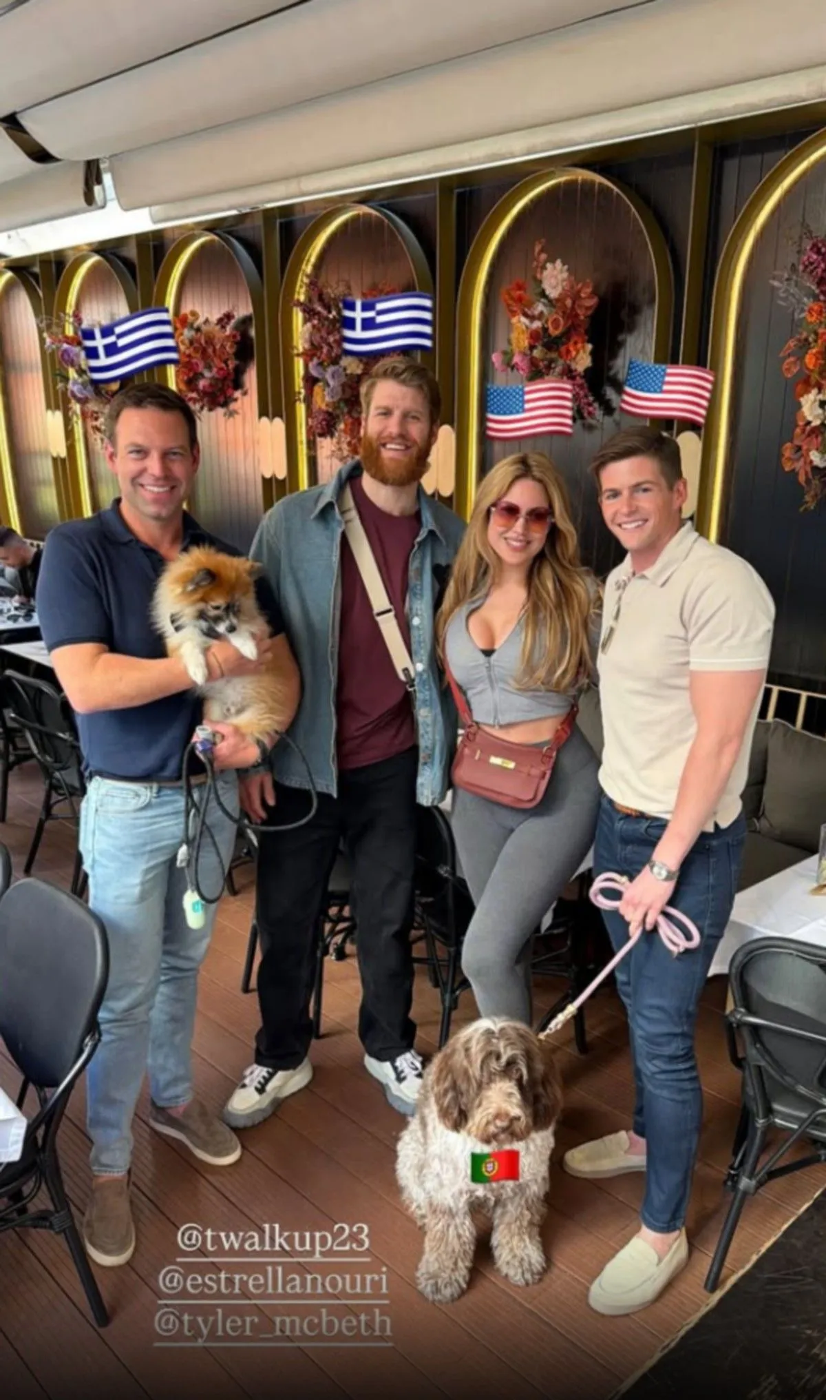 Ο γκαρντ του Ολυμπιακού, στο πλαίσιο αυτής της τυχαίας συνάντησης, φωτογραφήθηκε με τον πρώην πρόεδρο του ΣΥΡΙΖΑ. Τη σχετική φωτογραφία ανήρτησε ο Στέφανος Κασσελάκης στον προσωπικό του λογαριασμό στα social media. Ο ίδιος, μάλιστα, τοποθέτησε ελληνικές σημαίες πάνω από τον εαυτό του και τον Ουόκαπ από μία ελληνική σημαία, ενώ στους συζύγους τους τοποθέτησε αντίστοιχα αμερικανικές σημαίες.