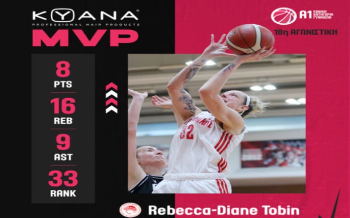 Η Ρεμπέκα Τόμπιν του Ολυμπιακού αναδείχθηκε KYANA MVP της 18ης Αγωνιστικής στην Α1 Γυναικών.