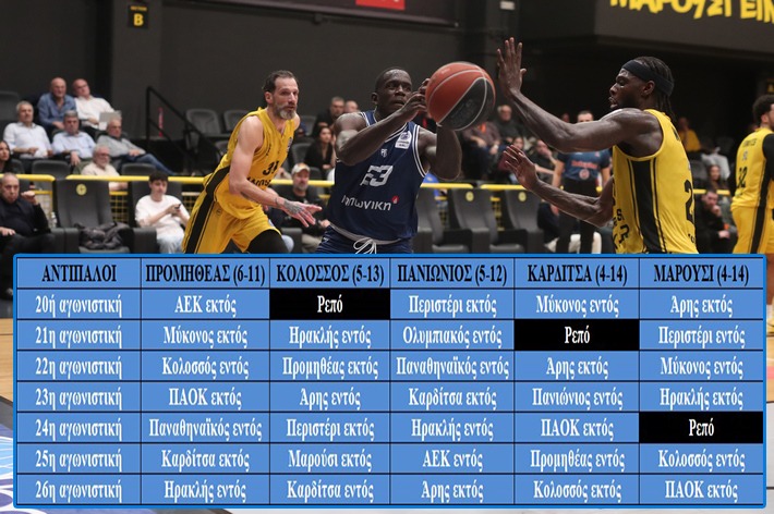 Ίσως οι τέσσερις αγωνιστικές στη διάρκεια του μήνα να μην απαντήσουν σε όλα τα ερωτηματικά που υπάρχουν μετά από 19 «στροφές», ωστόσο θα ξεδιαλύνουν περισσότερο την κατάσταση. Δεδομένου ότι το Πρωτάθλημα διανύει αυτήν την τελευταία εβδομάδα της διακοπής του, το basketa.gr παρουσιάζει τα γκρουπ που έχουν διαμορφωθεί και το πρόγραμμα των ομάδων που τα συνθέτουν, ενόψει των επτά τελευταία αγωνιστικών.