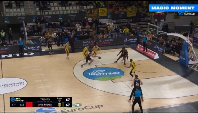 Λίγο νωρίτερα ο Ρόνι Χάρελ, με 2/3 βολές ισοφάρισε σε 67-67 για τους Θεσσαλονικείς. Η Τρέντο πήρε τάιμ άουτ και επανέφερε την μπάλα από το κέντρο του γηπέδου. Ο Λευτέρης Μποχωρίδης έχασε όμως τον Αμερικανό γκάρντ ο οποίος υποδέχτηκε την πάσα πήγε δυναμικά προς το καλάθι όπου ευστόχησε για το τελικό 69-67.