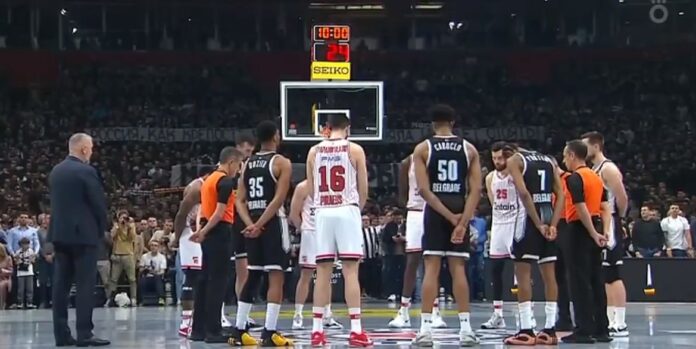 Με το ενός λεπτού σιγή, στη μνήμη των θυμάτων που έχασαν τη ζωή τους στη Ρωσία από το τρομοκρατικό χτύπημα σε συναυλία, ξεκίνησε ο αγώνας της Παρτιζάν με τον Ολυμπιακό στο Βελιγράδι, αποτίνοντας ένδειξη σεβασμού για το μακελειό που έγινε στη Μόσχα.