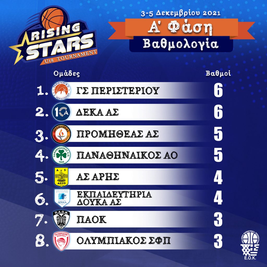 Το τουρνουά U18 Rising Stars, το οποίο έδωσε βήμα και αγωνιστική δράση στα νέα παιδιά σε μια δύσκολη εποχή εξαιτίας του κορονοϊού επιστρέφει για τη Β’ Φάση το Σαββατοκύριακο 22 και 23 Ιανουαρίου. Οι αγώνες θα διεξαχθούν στην Αθήνα και στη Θεσσαλονίκη και θα αγωνιστούν οι ΠΑΟΚ, Παναθηναϊκός, ΔΕΚΑ, Περιστέρι, Ολυμπιακός. Προμηθέας Πάτρας, Δούκας και Άρης.
