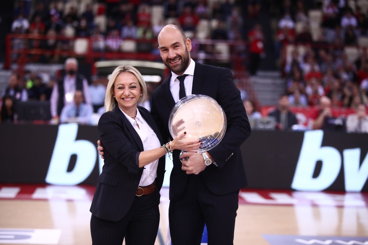 Ο «μύθος» του ευρωπαϊκού μπάσκετ με το που πάτησε στο παρκέ είδε τα φλας να αστράφτουν πάνω του και τους οπαδούς των Πειραιωτών να τον καταχειροκροτούν, έχοντας και την οικογένειά του στο πλευρό του. Αυτά που είχαν ετοιμάσει στον Ολυμπιακό για τον «Coach Bill», βέβαια, δεν είχαν σταματήσει εκεί, προβάλλοντας ένα βίντεο με τις σπουδαιότερες στιγμές του, για να τον βραβεύσουν οι αδελφοί Αγγελόπουλοι και ο βασικός χορηγός του συλλόγου, λίγο μετά την παρουσίαση των ομάδων, σε ένα ιδιαίτερα συγκινησιακό κλίμα.