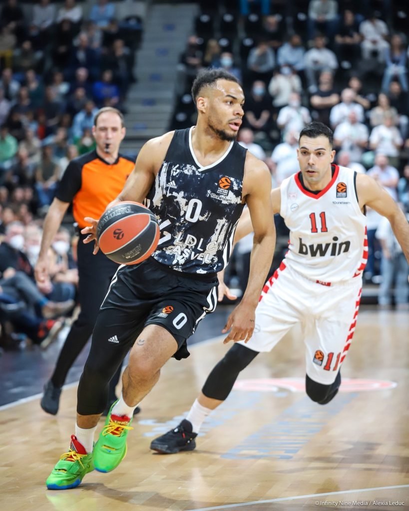 Η Γαλλική ομάδα έβαλε δύσκολα στους «ερυθρόλευκους» αλλά εν τέλει, η ελληνική ομάδα κατέκτησε την πολύτιμη νίκη με 80-94 και μαζί το πλεονέκτημα της έδρας, για τα πλέιοφς της Γιούρολιγκ. Πλέον ο Ολυμπιακός δεν θα παίξει με το άγχος, την επόμενη εβδομάδα απέναντι στη Μπαρτσελόνα και θα προσπαθήσει για το καλύτερο δυνατό αποτέλεσμα,γιατί όχι και την κατάκτηση της 3ης θέσης. Σε μια αναμέτρηση όπου κυριολεκτικά «έβρεξε» τρίποντα, μεγάλοι πρωταγωνιστές ήταν οι Τάιλερ Ντόρσεϊ και Σάσα Βεζένκοφ που είχαν από 21 και 18 αντίστοιχα.Επίσης πολύτιμες βοήθειες από τον «ξεχασμένο» Ζαν Σάρλ. Ο Γάλλος φόργουορντ (πρώην της Βιλερμπάν) έβγαλε καλές άμυνες και γενικά έδωσε ενέργεια στην ομάδα του Γιώργου Μπαρτζώκα. Για τους Γάλλους ο Μάθιου Στραζέλ έκανε δύσκολη τη ζωή των φιλοξενούμενων, με τους 16 πόντους του,ενώ θετικός ο Κώστας Αντετοκούνμπο με 7 πόντους και 2 ριμπάουντ.