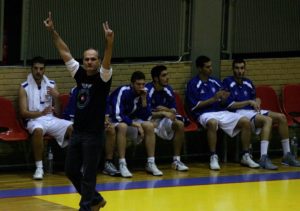 Ο Γιώργος Ζαφειρούδης ως κόουτς της Νίκης πριν μερικά χρόνια στο Μετς σε ματς με το Παγκράτι και πίσω του, αν διακρίνονται σωστά: Μαλτέσιος, Καραγκιολίδης κ. ά.