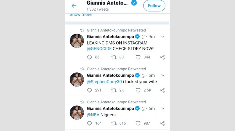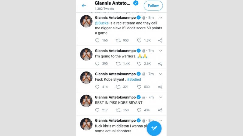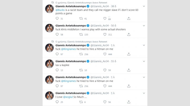 Αυτός ή αυτοί που παραβίασαν το λογαριασμό του "Greek Freak" δε σεβάστηκαν κανέναν και τίποτα, αφού έπιασαν στο στόμα τους ακόμη και τον αδικοχαμένο Κόμπε Μπράιαντ και γέμισαν το προφίλ του με χυδαία σχόλια.